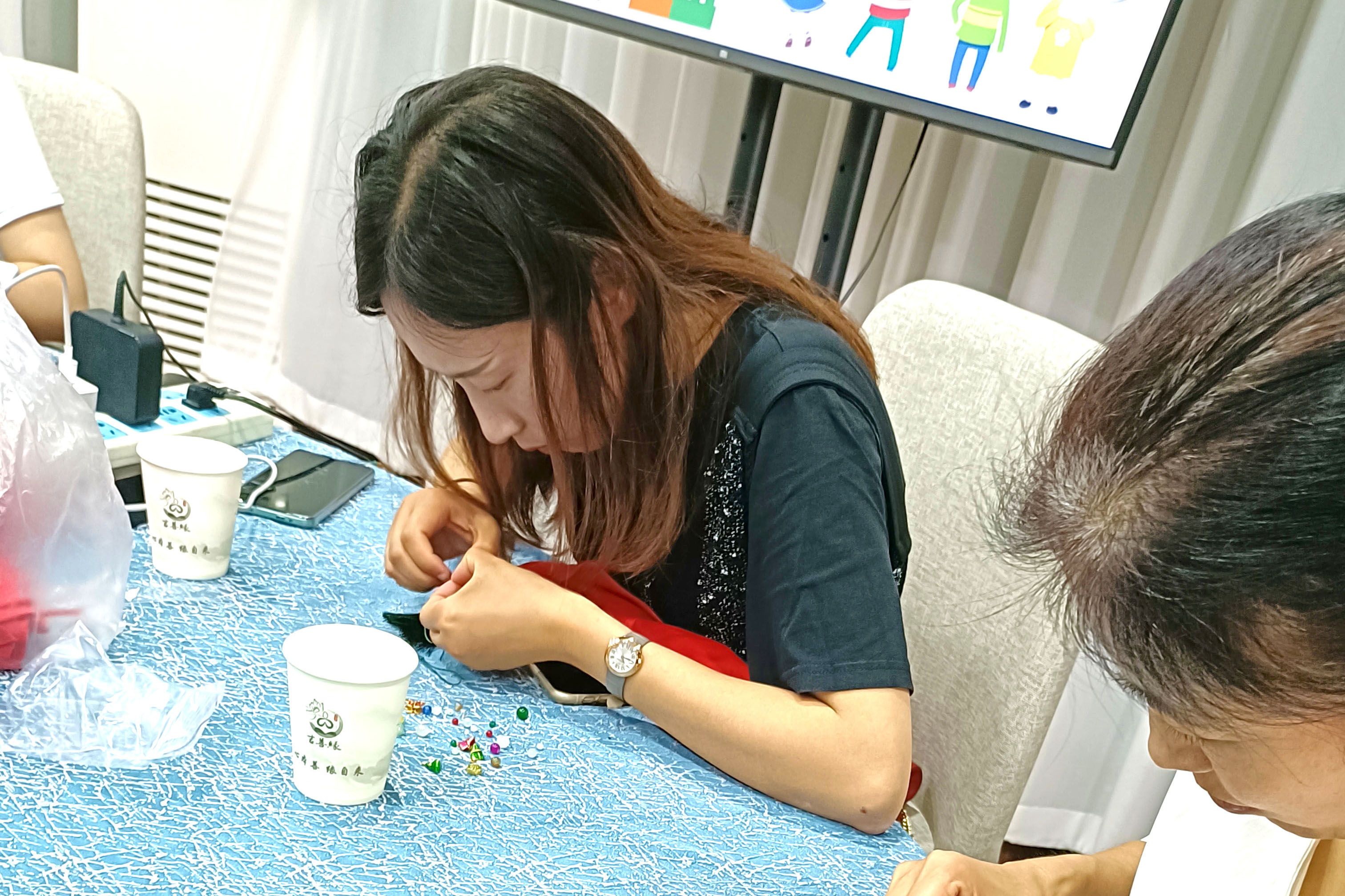 在隨后的動(dòng)手制作環(huán)節(jié)中,女職員們充分發(fā)揮了自己的審美藝術(shù),精心挑選色珠搭配,相互交流編織心得,一串串色彩斑斕、做工精致的掛件呈現(xiàn)在眼前。