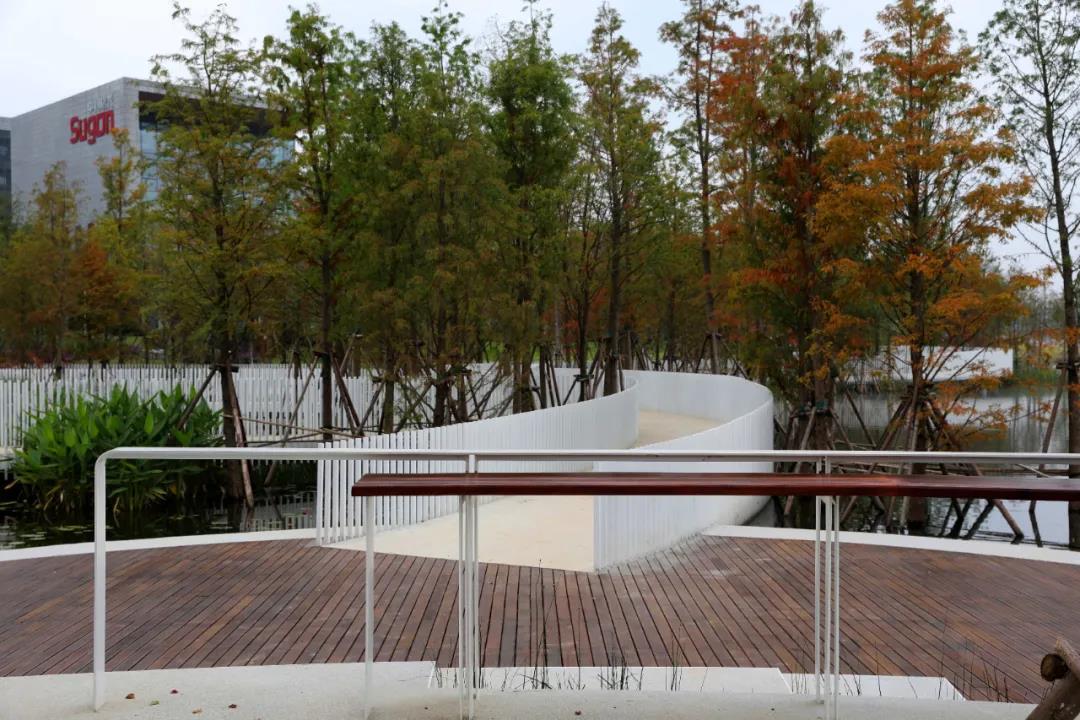 天府新區(qū)不僅僅對湖心島做了地形的處理,同時根據(jù)湖心島的高程、與水的關(guān)系配置了植物群落以及蜿蜒的弧形岸線等設(shè)計(jì),使得湖心島的生物越來越豐富。