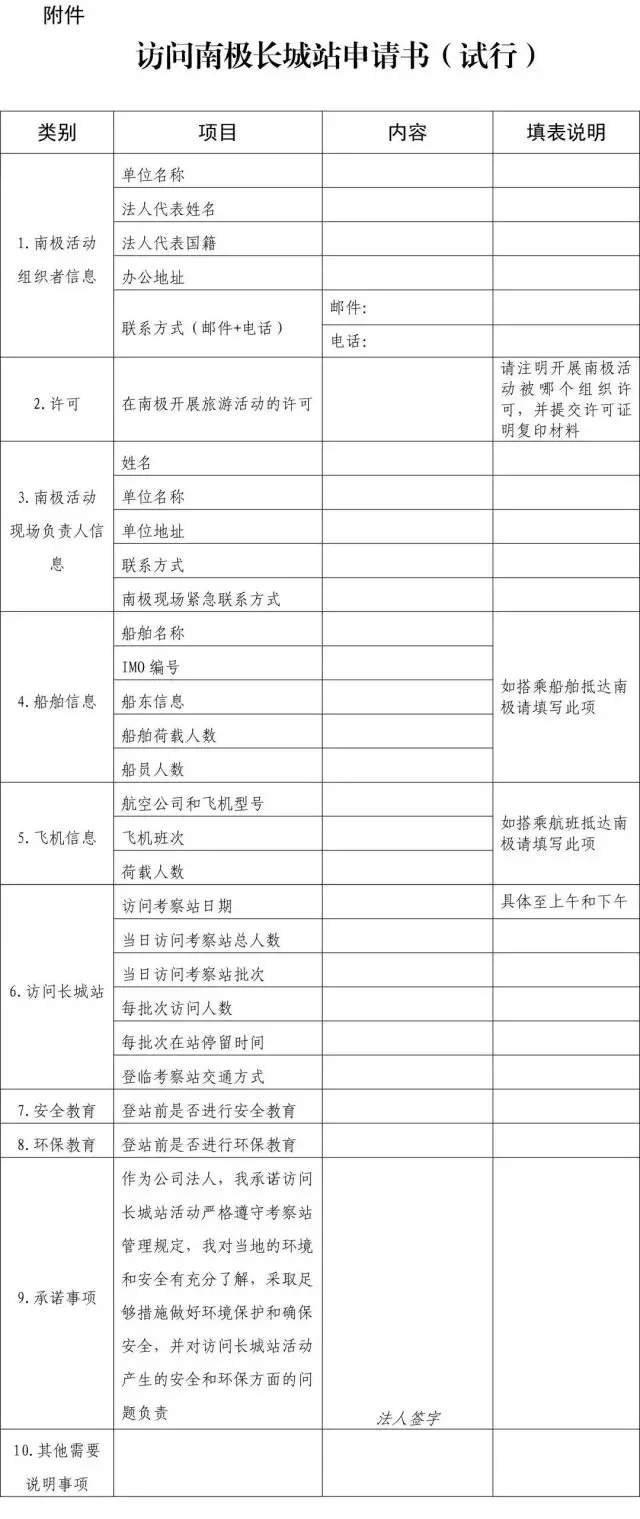 按照指南,擬申請赴長城站開展旅游的企業(yè),可以在每年9月15日至9月30日期間的工作日,向自然資源部政務大廳現(xiàn)場遞交中文版書面材料。