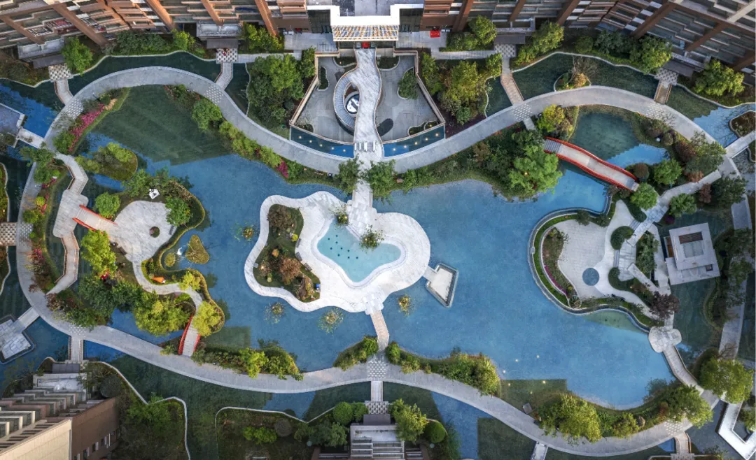 一池水,一片海,它是我們心中美好的水岸島居生活的一個真實夢境。設(shè)計師以現(xiàn)代的手法構(gòu)圖溪岸,融合泛會所、溪流、湖心島等原生態(tài)水岸景觀,再現(xiàn)“岸梅溪春又生”的自然時尚居所,給人以森林般的水岸島居體驗,展現(xiàn)島居住宅和諧精緻之美。