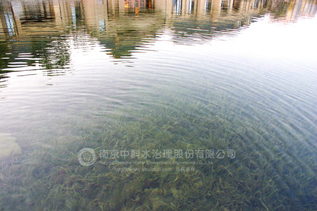 復(fù)地御香山二期景觀湖為新開(kāi)挖人工湖體。業(yè)主要求通過(guò)建立健康、穩(wěn)定、經(jīng)濟(jì)的清水型生態(tài)系統(tǒng)來(lái)保護(hù)湖水水質(zhì),實(shí)現(xiàn)長(zhǎng)效景觀性。水生態(tài)工程施工時(shí)間為2012年3月10日至5月30日??⒐ず螅瑥?fù)地御香山二期景觀湖水質(zhì)主要指標(biāo)達(dá)到 《國(guó)家地表水環(huán)境質(zhì)量標(biāo)準(zhǔn)》GB3838-2002 Ⅱ 類標(biāo)準(zhǔn),常年水體透明度在1.7米以上清澈見(jiàn)底,生態(tài)系統(tǒng)健康穩(wěn)定。