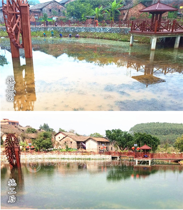 大塘鎮(zhèn)平天新坡生態(tài)綜合示范村鴛鴦湖水生態(tài)構建與水質提升工程項目是南京中科水治理股份有限公司在廣西南寧實施的“清水型生態(tài)系統(tǒng)構建工程”之一,工程實施區(qū)為魚塘改造擴建,建設水面面積3900平方米,平均水深1.8米。項目于2015年12月15日正式開工,2016年1月15日完工,并于2016年1月26日通過竣工驗收。工程實施內容主要有:基底改良工程、沉水植物群落構建工程、挺水、浮葉植物群落構建工程、魚類群落構建工程、大型底棲動物群落構建工程等。